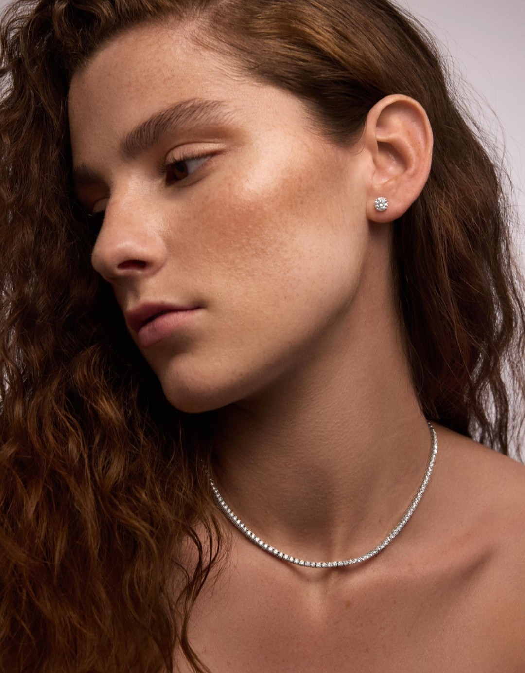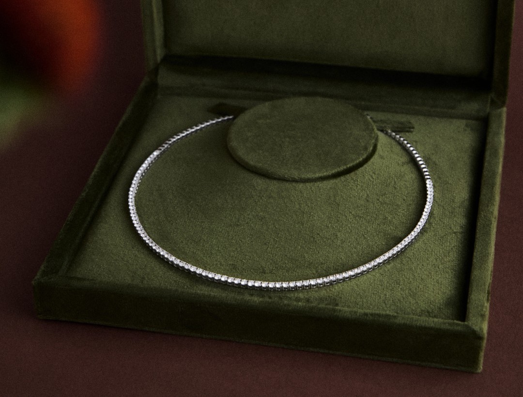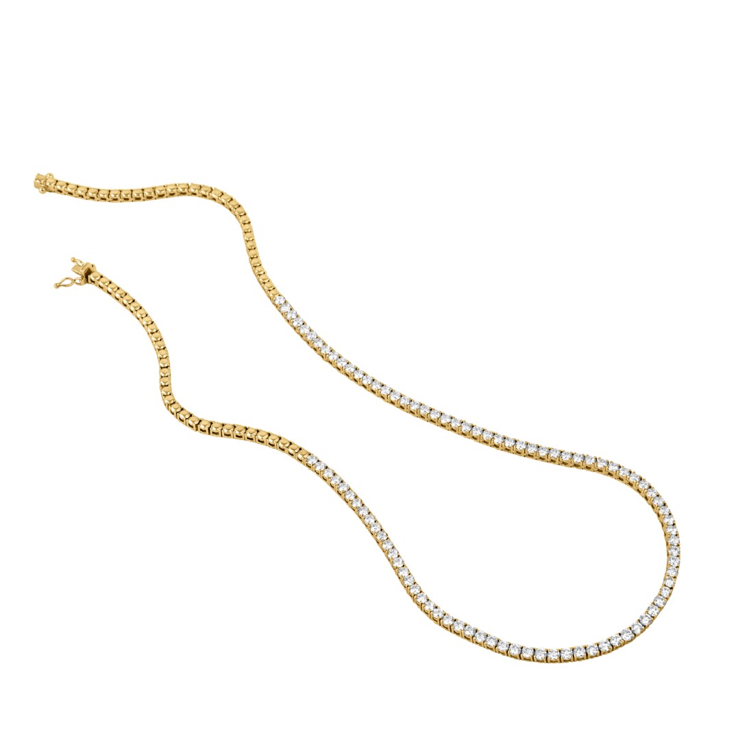 - The Classy Rivière Necklace featured is set with 90 diamonds of 0.065 carat each (or 2.6mm diameter) adding up to ta total of 6.0 carats. You have the possibility to change the carat weight based on your style according to the different diamond diameters provided.