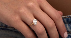The Eternal Twist Ring is available with 1 or 2 carat pear-shaped diamonds. All our diamonds are of color range D,E or F and of VS+ clarity.