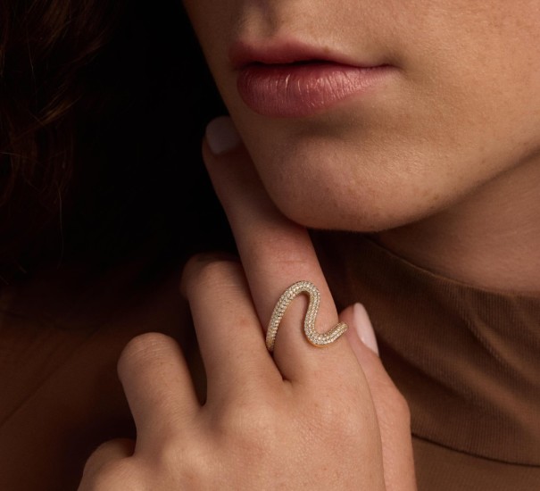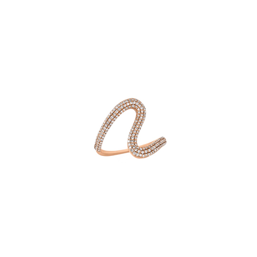 The Twisted Dance Ring is a captivating fusion of curves and brilliance, where gold intertwines with melee diamonds in a fluid, twisting design. Each turn of the band reflects a mesmerizing play of light, capturing the essence of movement and grace. This ring is a bold yet refined expression of elegance, designed to stand out while embracing timeless beauty in every delicate twist.