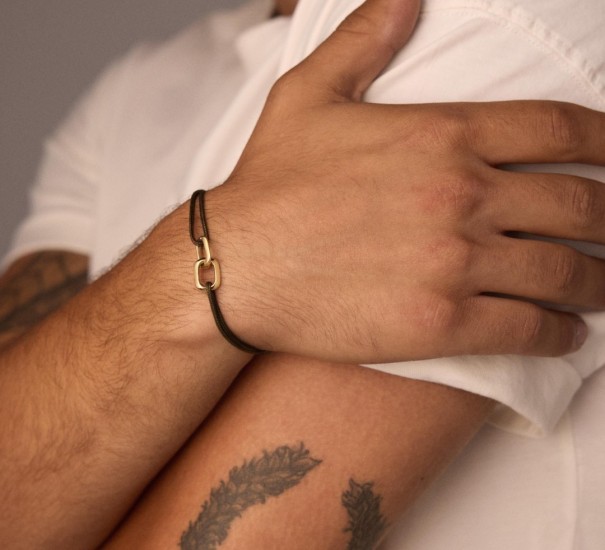 - The Bond Bracelet is customizable through choosing the cord and gold color along with the option of engraving the gold lock.