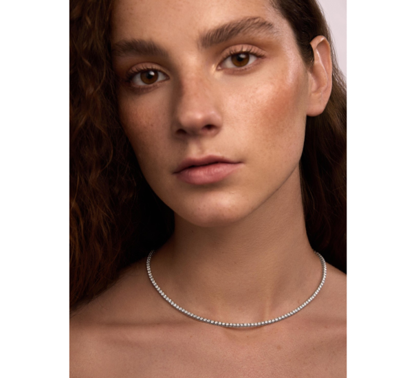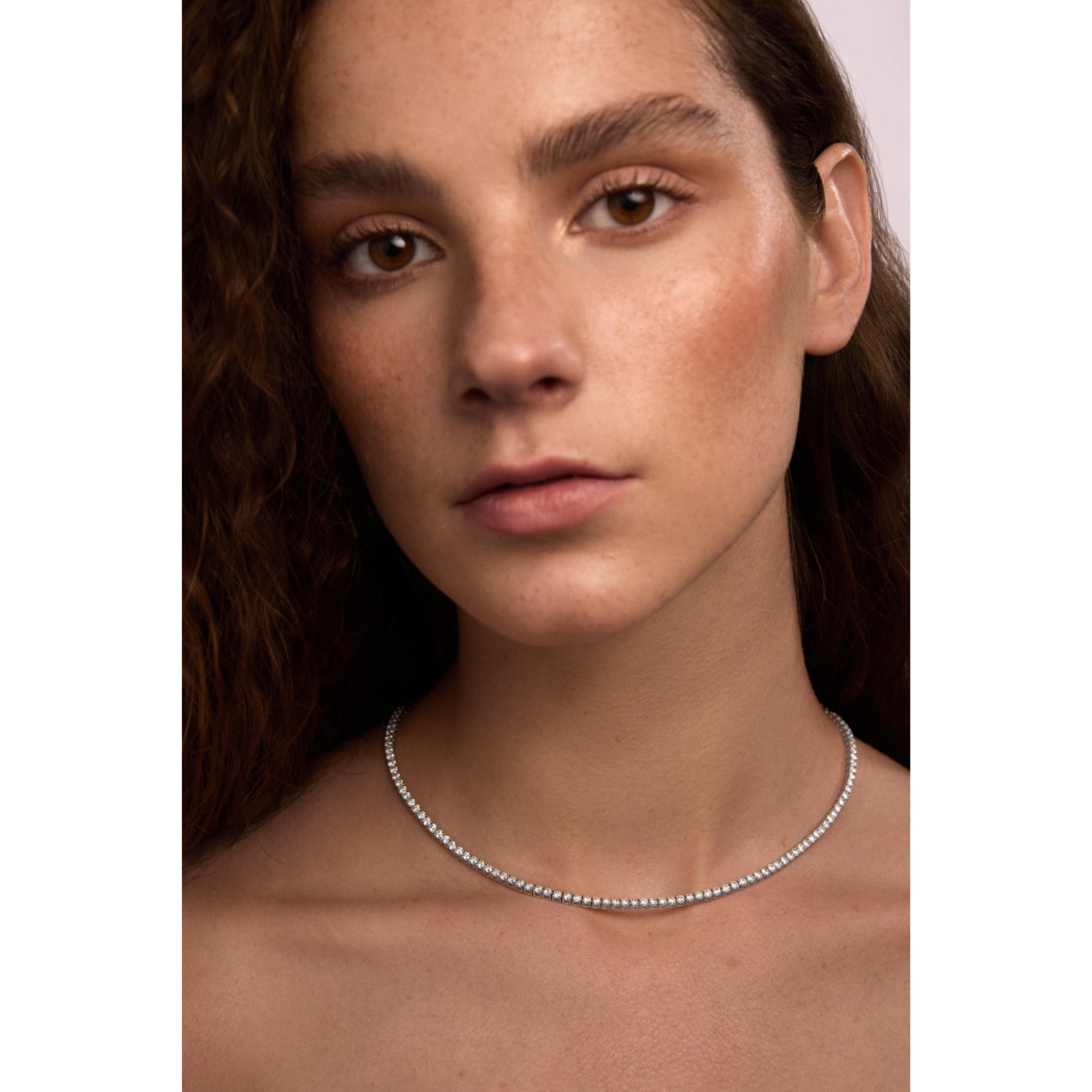- The Classy Rivière Necklace featured is set with 90 diamonds of 0.065 carat each (or 2.6mm diameter) adding up to ta total of 6.0 carats. You have the possibility to change the carat weight based on your style according to the different diamond diameters provided.