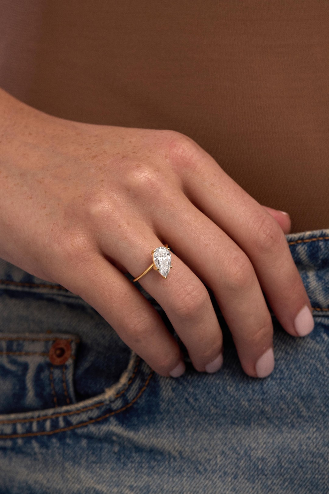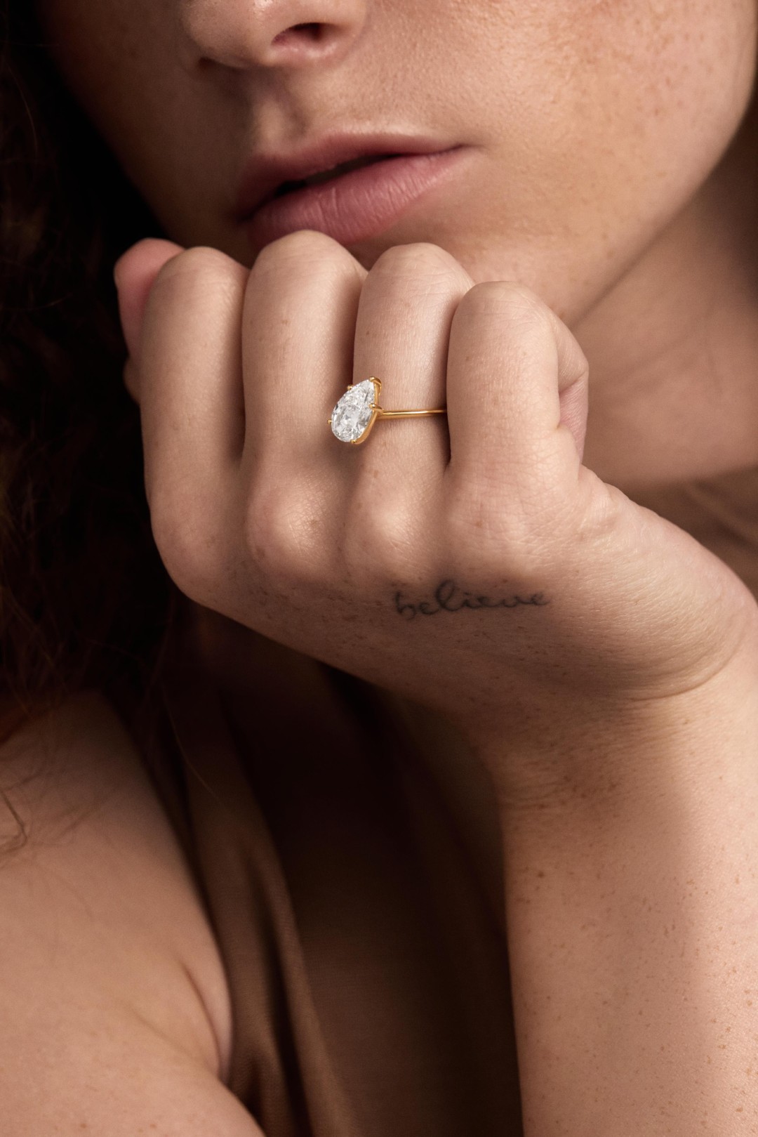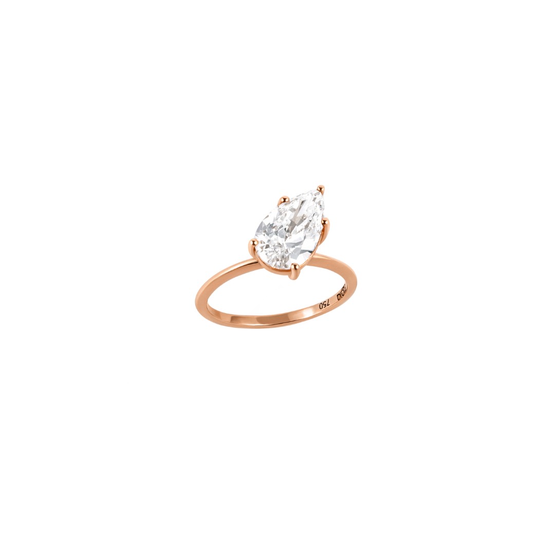The Eternal Twist Ring is available with 1 or 2 carat pear-shaped diamonds. All our diamonds are of color range D,E or F and of VS+ clarity.
